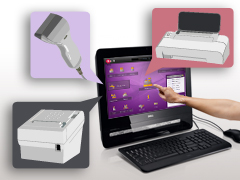 You can connect a touch screen and specific "Point of sale" peripherals: Barcode reader Till drawer Receipt printer Biometric mouse Client display Pin cards reader Caller ID | Recuperating data